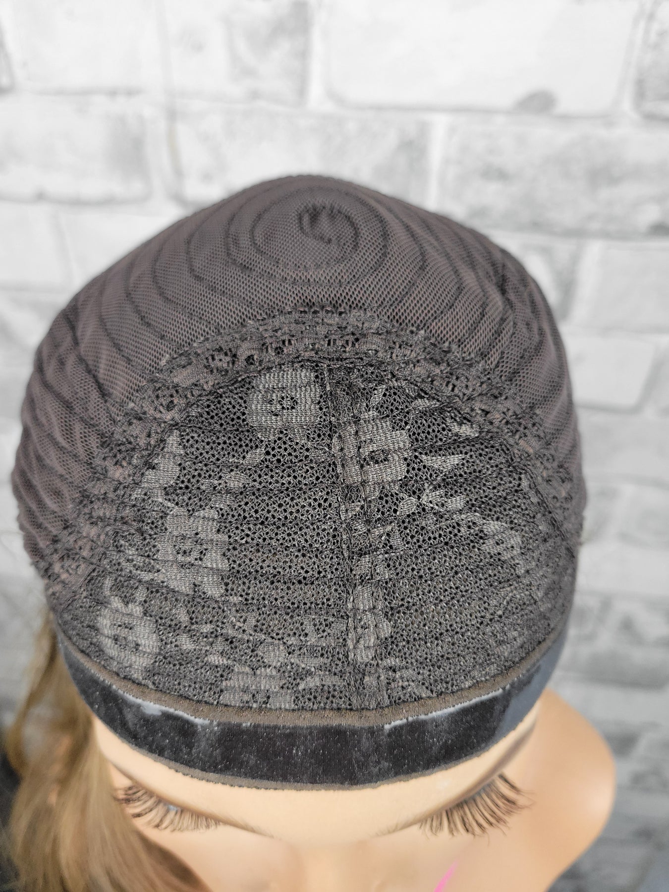 - Hand-tied hair around the perimeter allows for soft face-framing, sideburns, hats, or head coverings