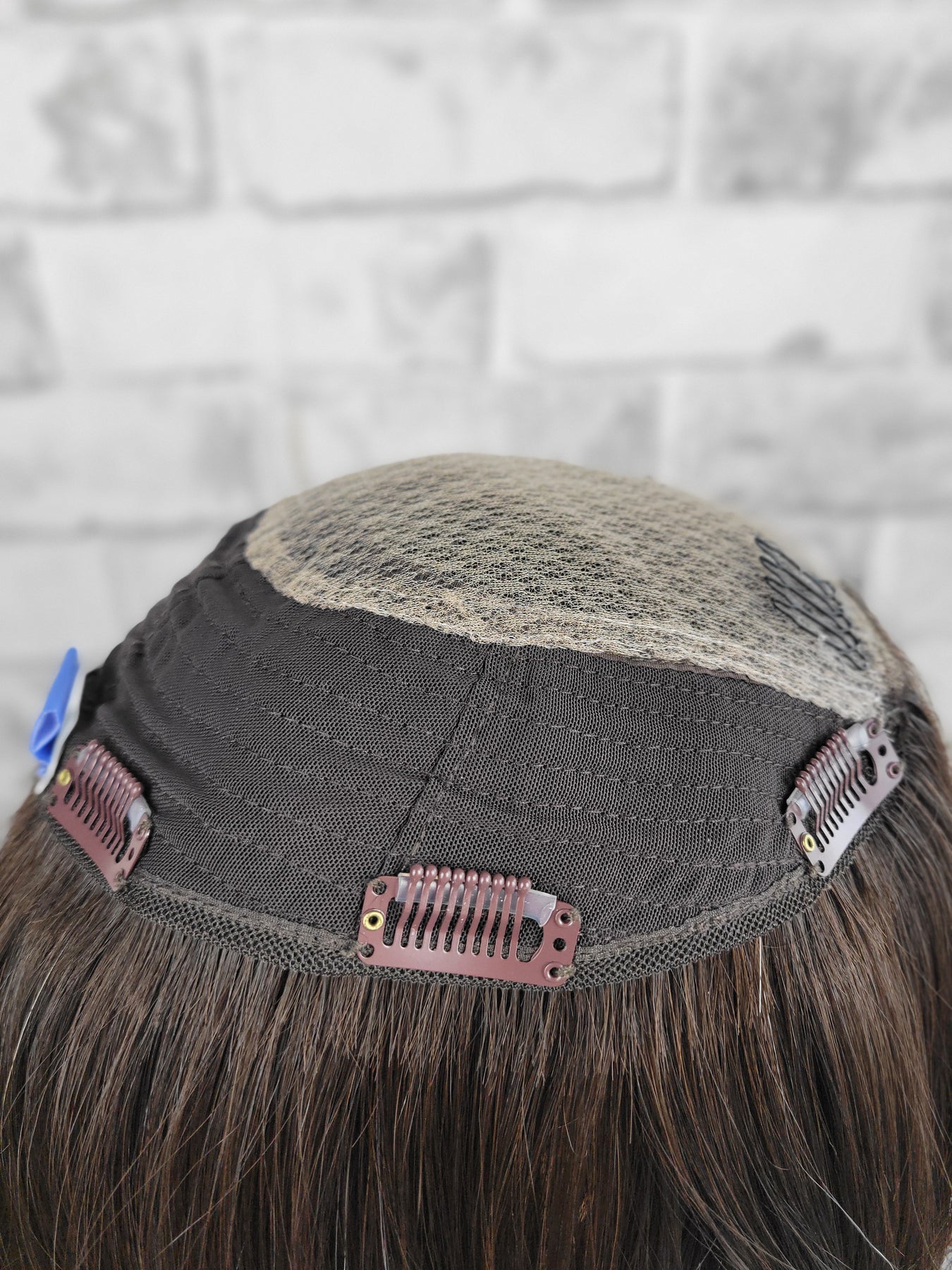 Ultra thin hand-tied lace provides the lightest weight & natural appearance. Designed to add volume and coverage to the top of the head, typically used by people experiencing hair thinning or those who want extra fullness. The term "closed lace" refers to the base construction of the topper as opposed to a silk material. Pressure sensitive clips keep it secure without damaging your bio hair.