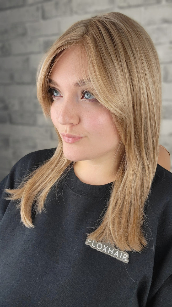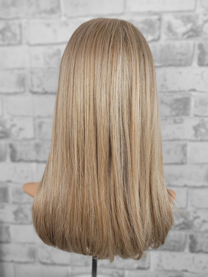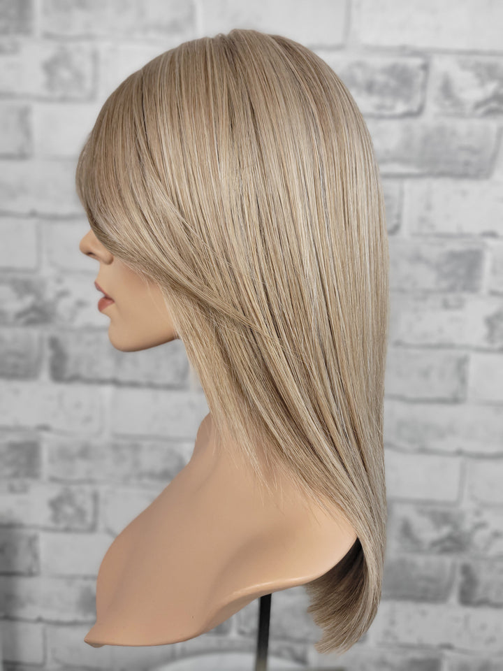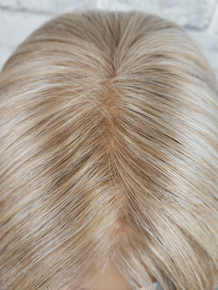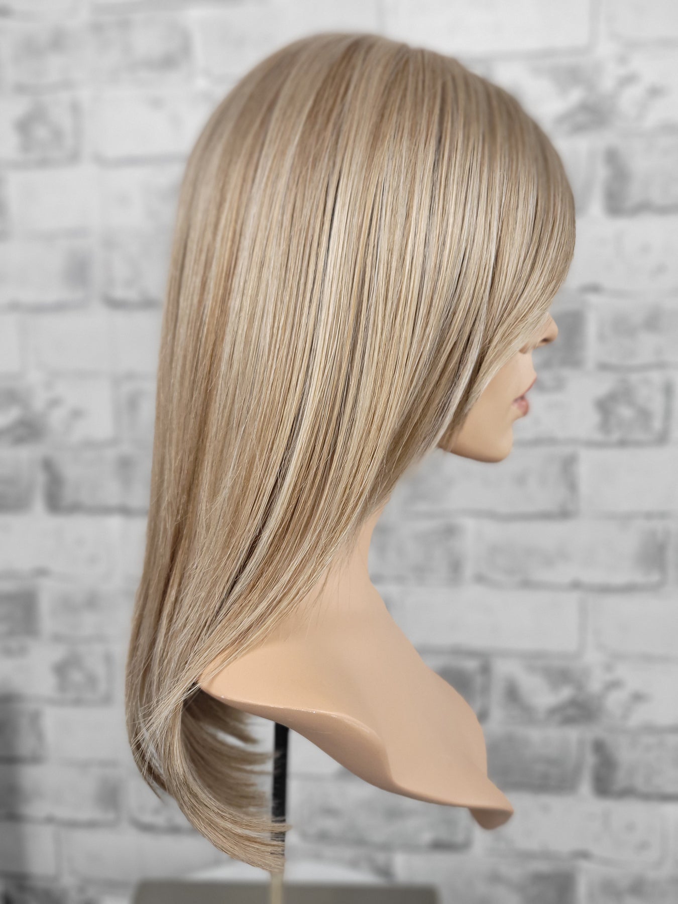 *SYNTHETIC WIGS ARE FINAL SALE* DETAILS: These blow-dry, low heat-resistant synthetic wigs feature a multi-directional part monofilament top for a natural scalp appearance and soft, hair-like fibers for a realistic feel. Designed with an open-wefted cap, they offer lightweight comfort and breathability, making them perfect for all-day wear. We recommend using very little to no heat to keep the fibres soft. They can burn very easy with heat higher than 250°F. Styling Tip: fibers need to cool to hold new style/curl if heat is applied. We suggest pinning each curl until fibers completely cool. COLOUR: A blended neutral beige blonde allover. |