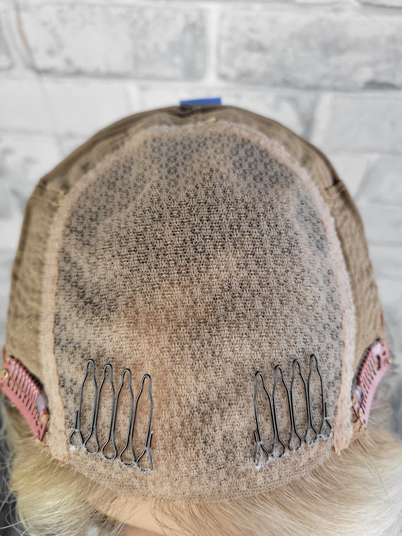 Ultra thin hand-tied lace provides the lightest weight & natural appearance. Designed to add volume and coverage to the top of the head, typically used by people experiencing hair thinning or those who want extra fullness. The term "closed lace" refers to the base construction of the topper as opposed to a silk material. Pressure sensitive clips keep it secure without damaging your bio hair.