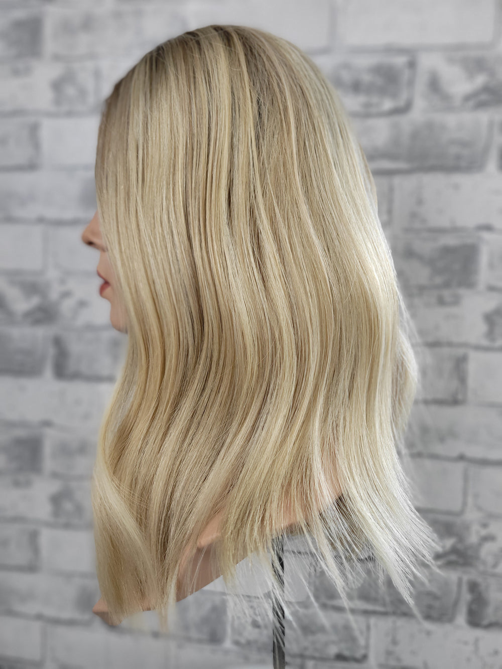 COLOUR: Blend of soft neutral roots, warm lowlights throughout. Perfect natural blonde.