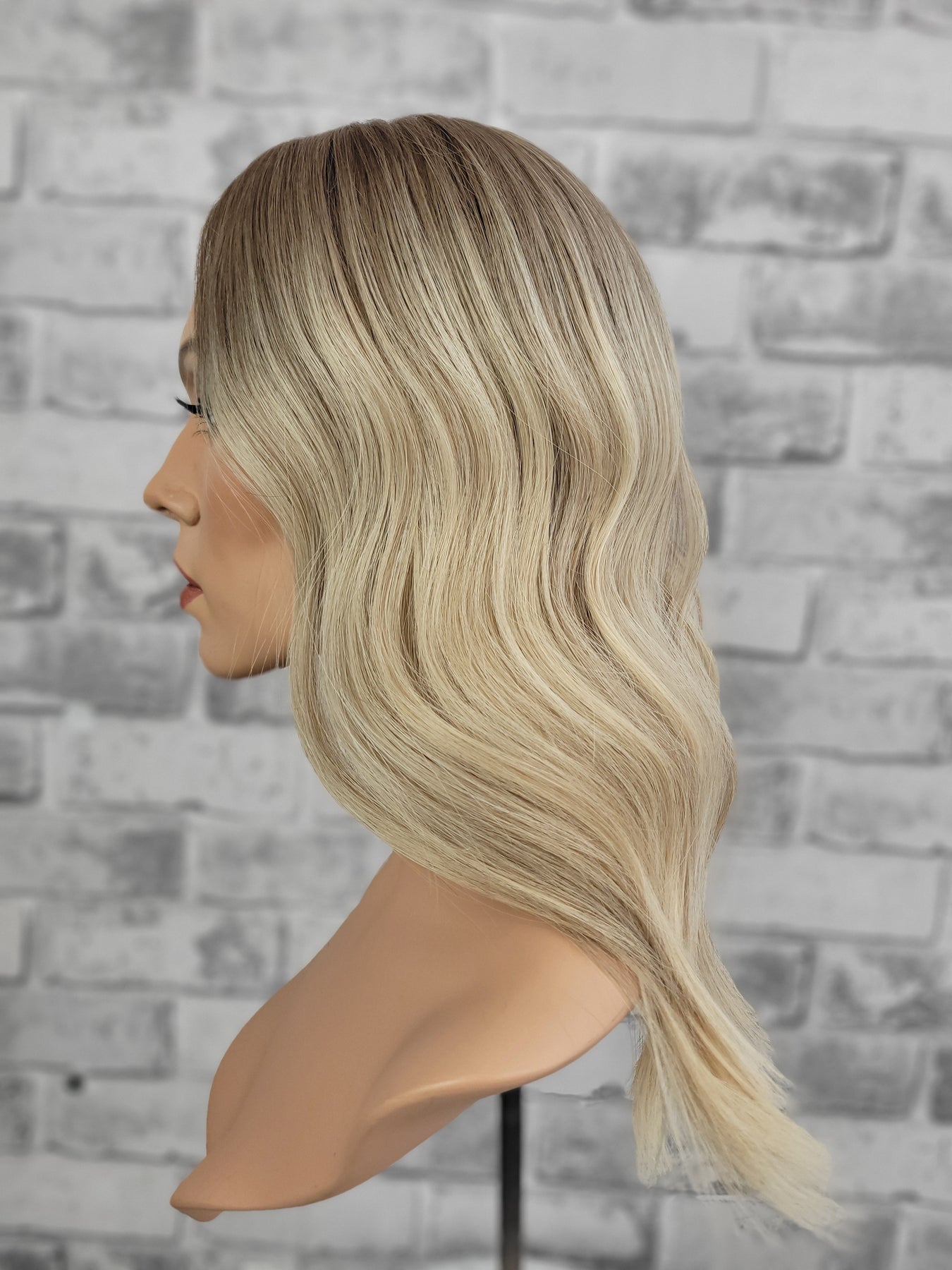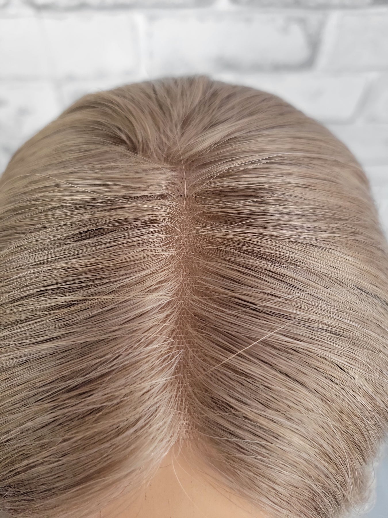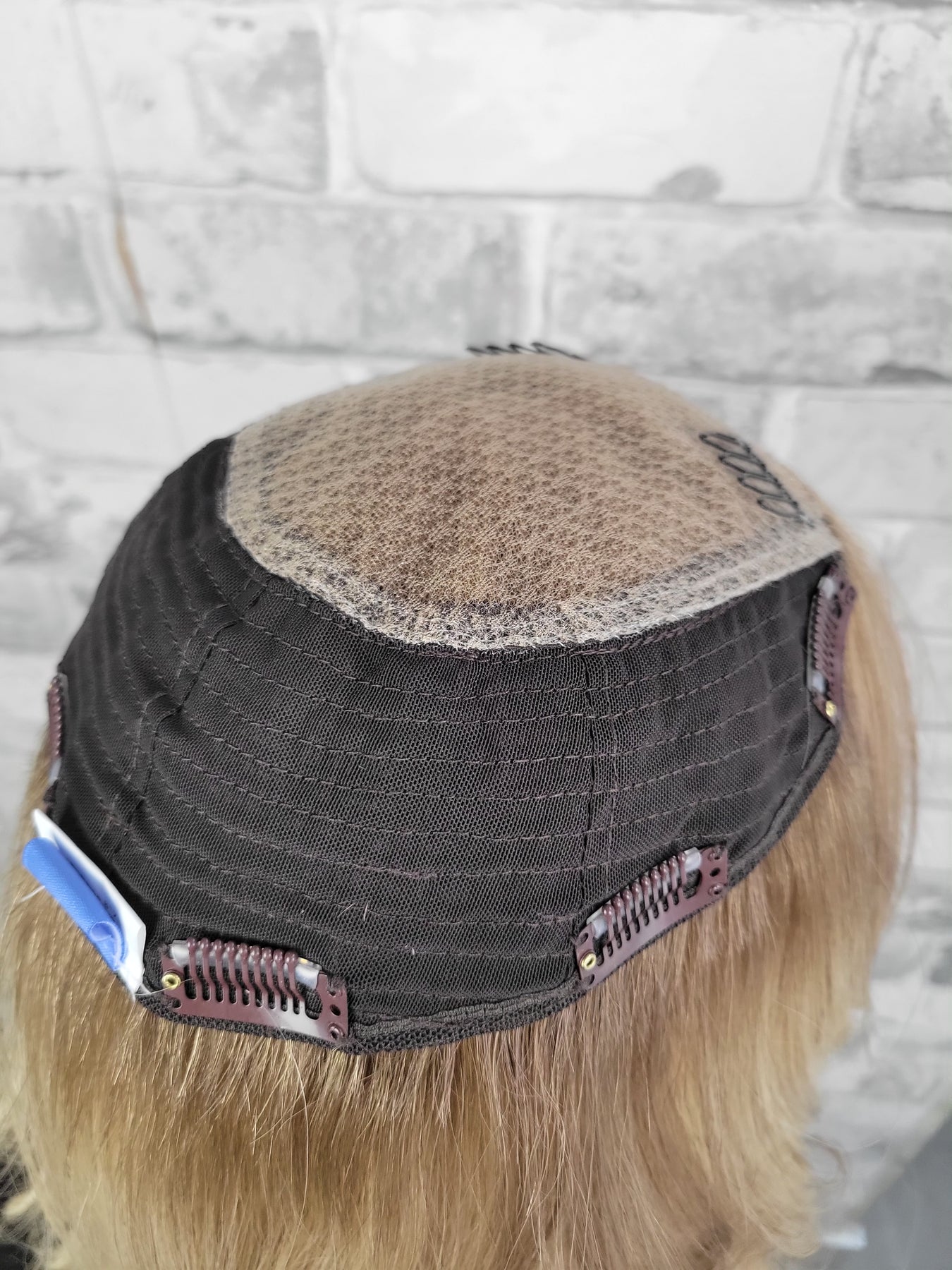 Ultra thin hand-tied lace provides the lightest weight & natural appearance. Designed to add volume and coverage to the top of the head, typically used by people experiencing hair thinning or those who want extra fullness. The term "closed lace" refers to the base construction of the topper as opposed to a silk material. Pressure sensitive clips keep it secure without damaging your bio hair.