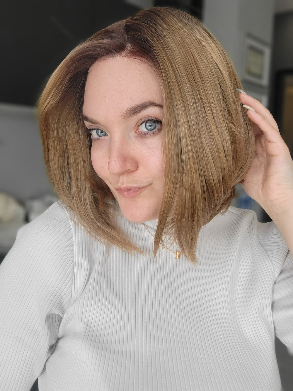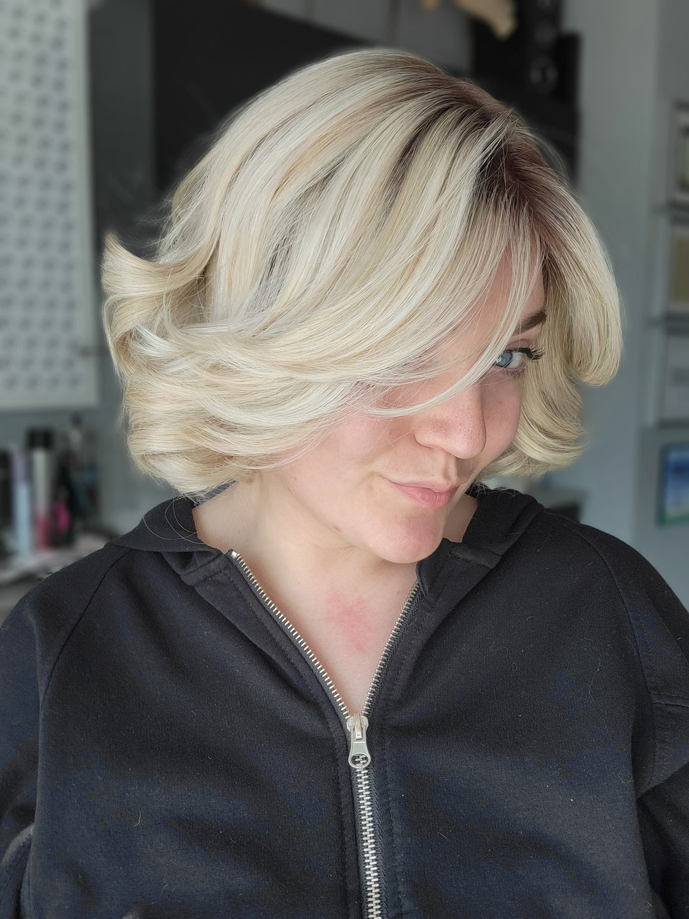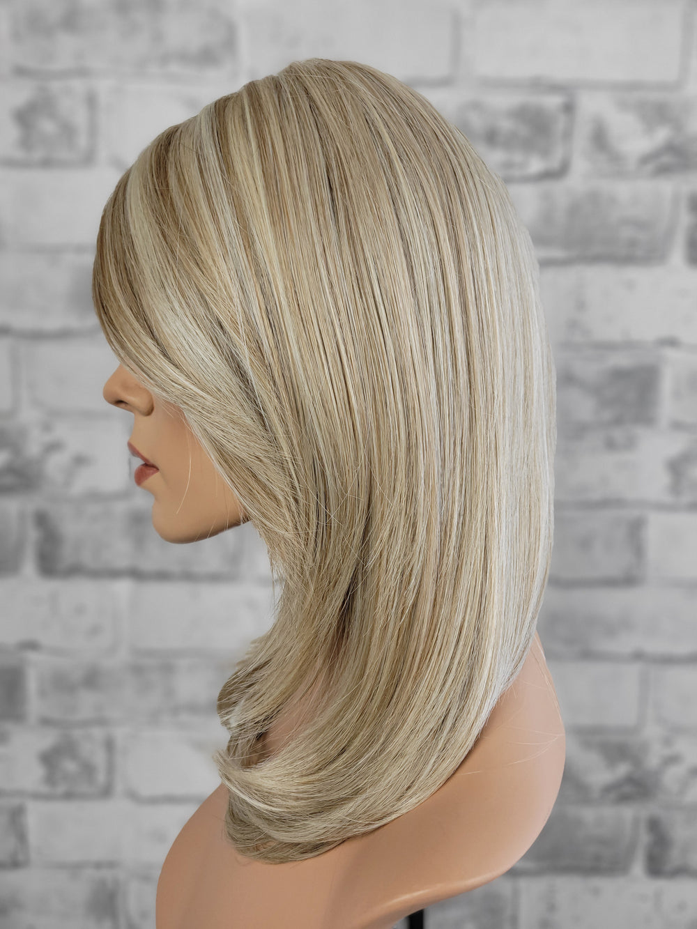 *SYNTHETIC WIGS ARE FINAL SALE* DETAILS: These blow-dry, low heat-resistant synthetic wigs feature a multi-directional part monofilament top for a natural scalp appearance and soft, hair-like fibers for a realistic feel. Designed with an open-wefted cap, they offer lightweight comfort and breathability, making them perfect for all-day wear. We recommend using very little to no heat to keep the fibres soft. They can burn very easy with heat higher than 250°F. Styling Tip: fibers need to cool to hold new style/curl if heat is applied. We suggest pinning each curl until fibers completely cool. COLOUR: Dark roots blended into a gorgeous combination of cool and silver toned blonde. |