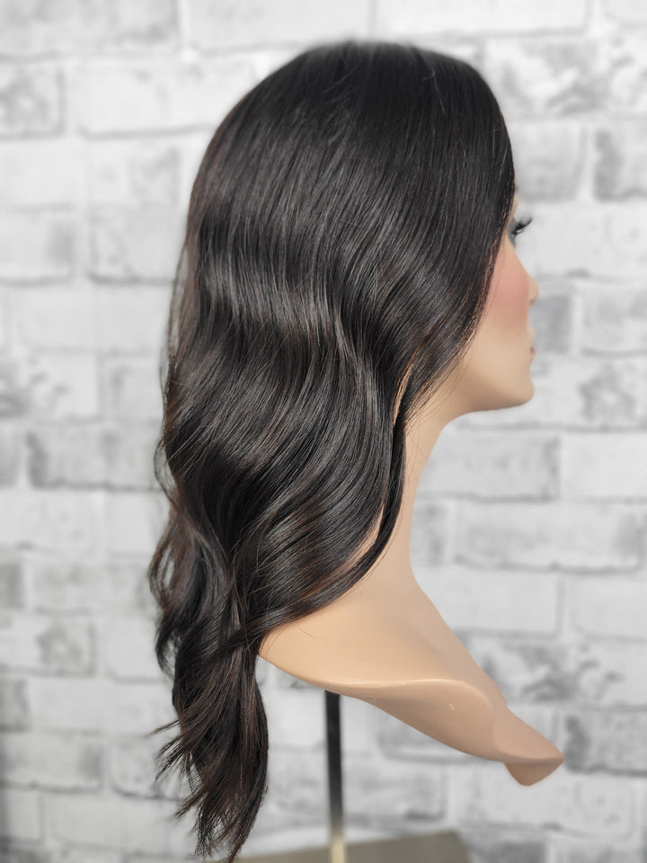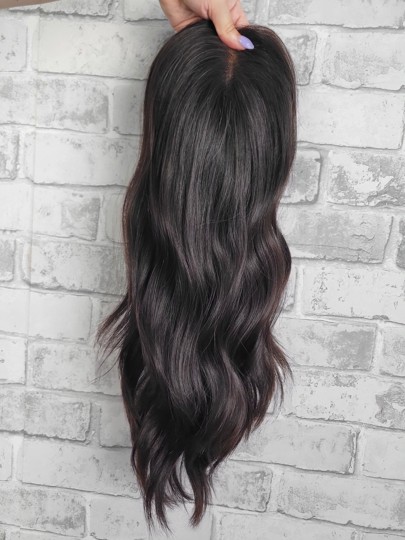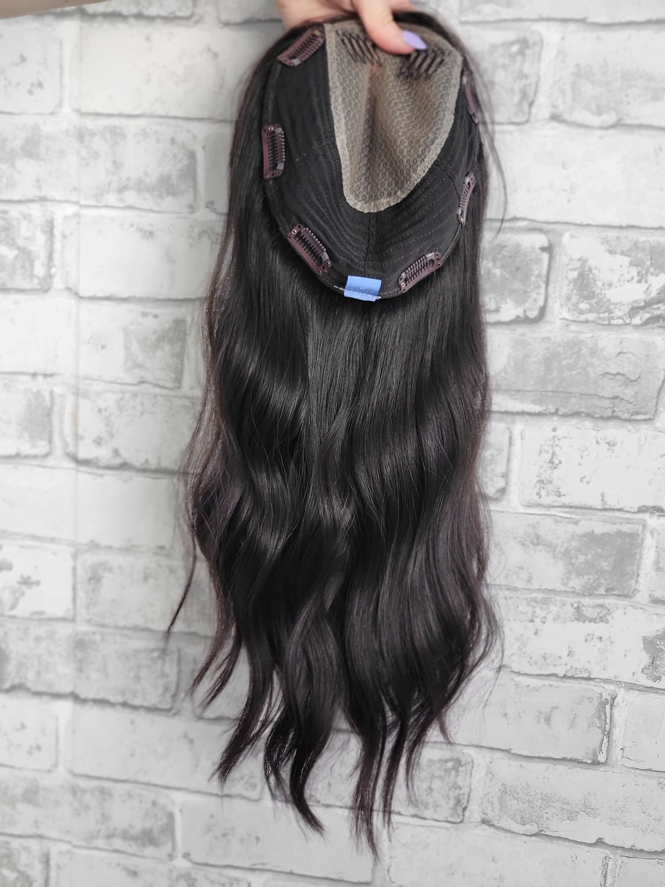 Ultra thin hand-tied lace provides the lightest weight & natural appearance. Designed to add volume and coverage to the top of the head, typically used by people experiencing hair thinning or those who want extra fullness. The term "closed lace" refers to the base construction of the topper as opposed to a silk material. Pressure sensitive clips keep it secure without damaging your bio hair.